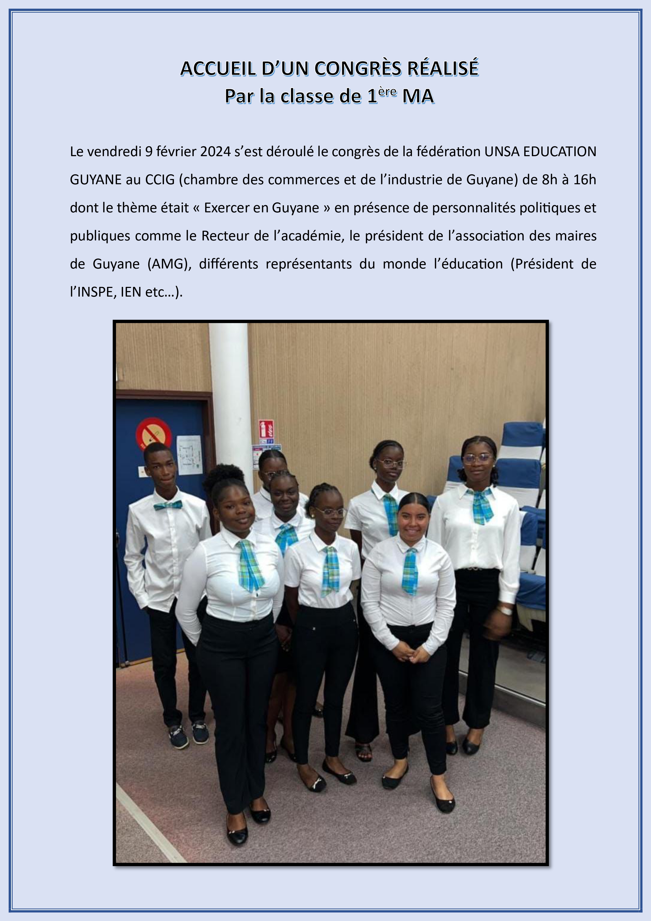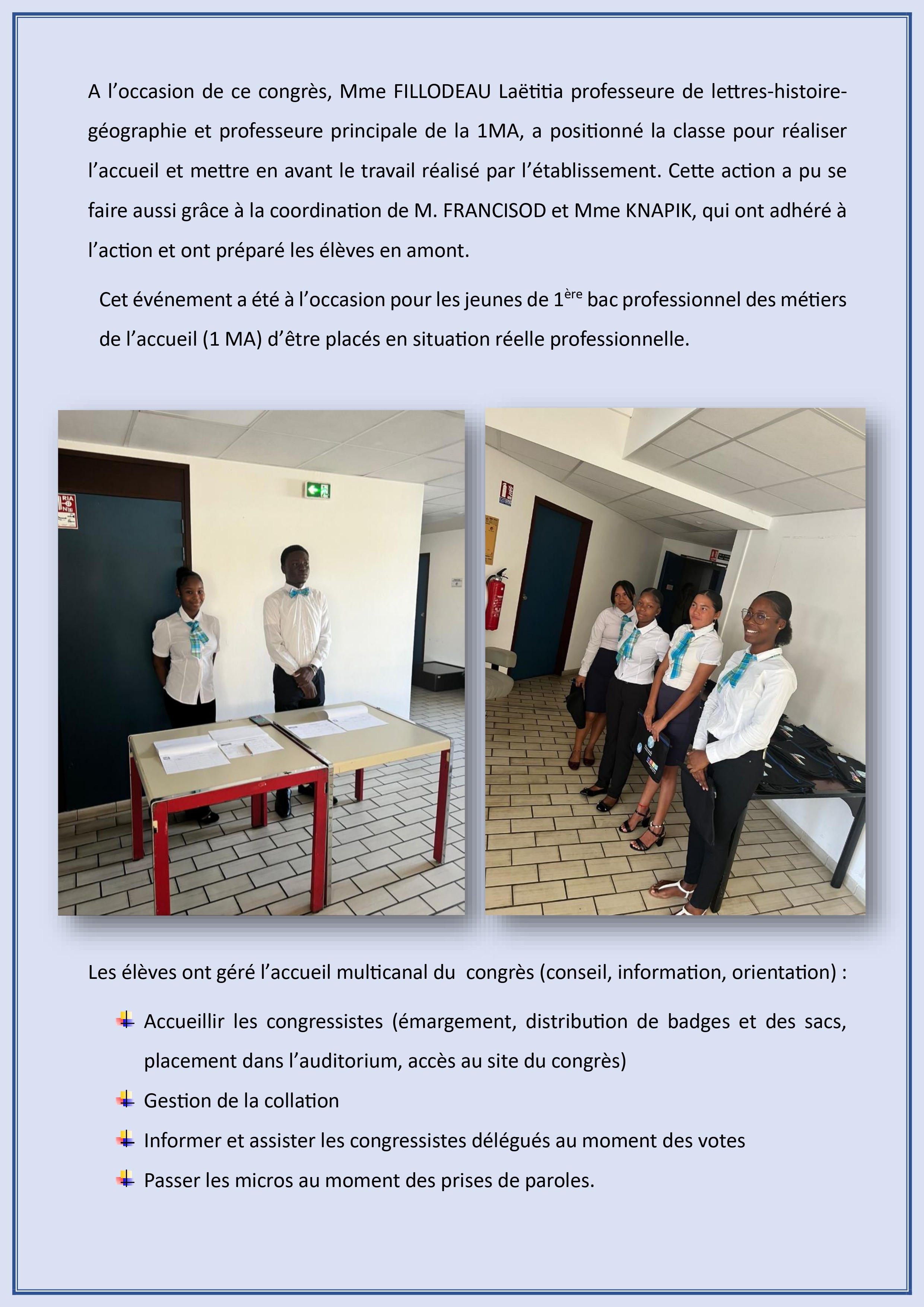 La classe de 1ère MA (Métiers de l’Accueil) en action professionnel lors d’un congrès syndical. L’accueil est leur métier.